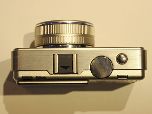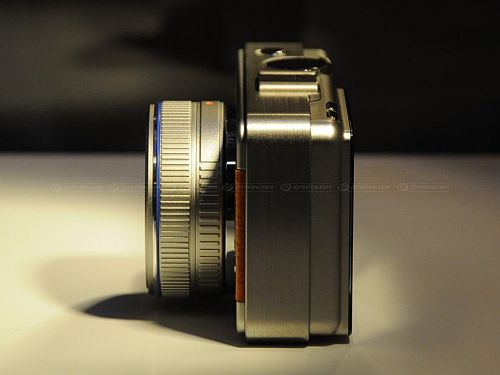 И действительно, новинка получилась весьма компактной - 120 x 65 x 32 мм, а значит, камеру вполне можно разместить в кармане куртки, ведь и показанный в ходе демонстрации аппарата объектив отличается компактными размерами. В случае необходимости возможно заменить объектив на иную модель, в том числе и стандарта Four Thirds, посредством специального адаптера. Задняя часть фотокамеры, на которой находятся основные кнопки выбора режимов съемки, дисплей, клавиши управления просмотром снимков и пр., очень напоминает таковую у фотокомпактов – пользователь должен без особых проблем освоить работу с аппаратом. Напоследок скажем, что пока конкретной информации относительно характеристик